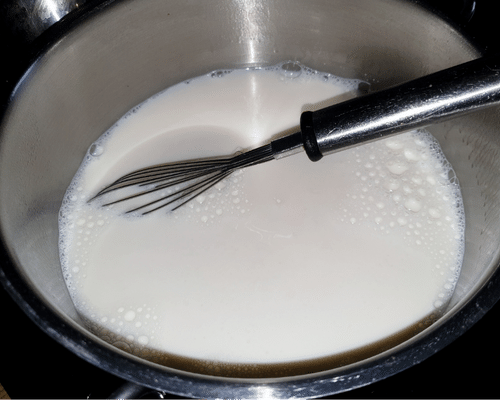 2. AdımSüt, şeker ve krema sos tenceresine alınır ve scald edlir.