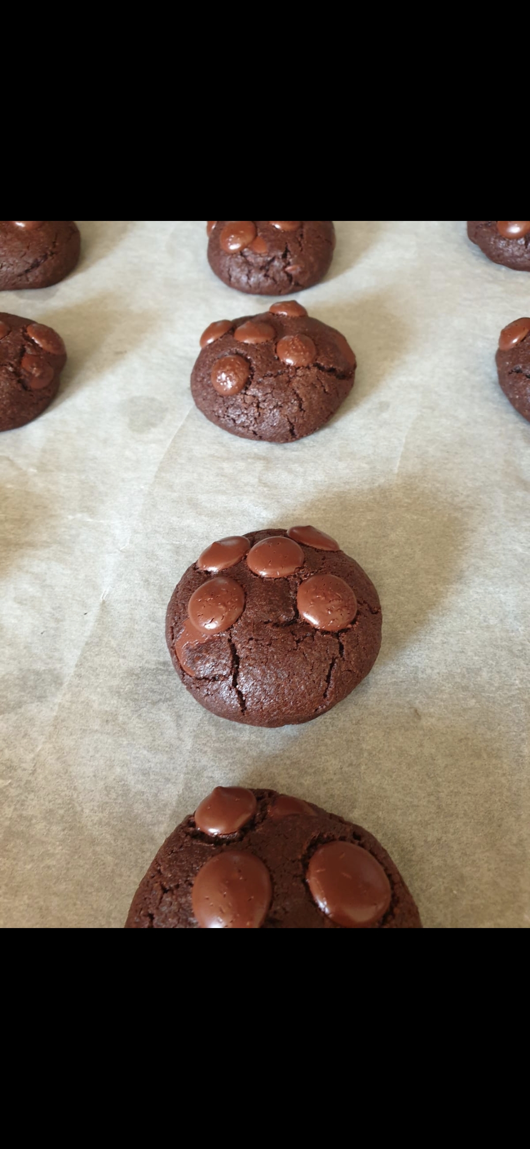 -tereyağ ve şeker çırpılır -yumurta kırılır diğer malzemeler eklenir -en son çikolata eklenir çok karıştırılmaz -porsiyonlanır ve dolaba atılır -180 derecede 10-12 dk pişirilir