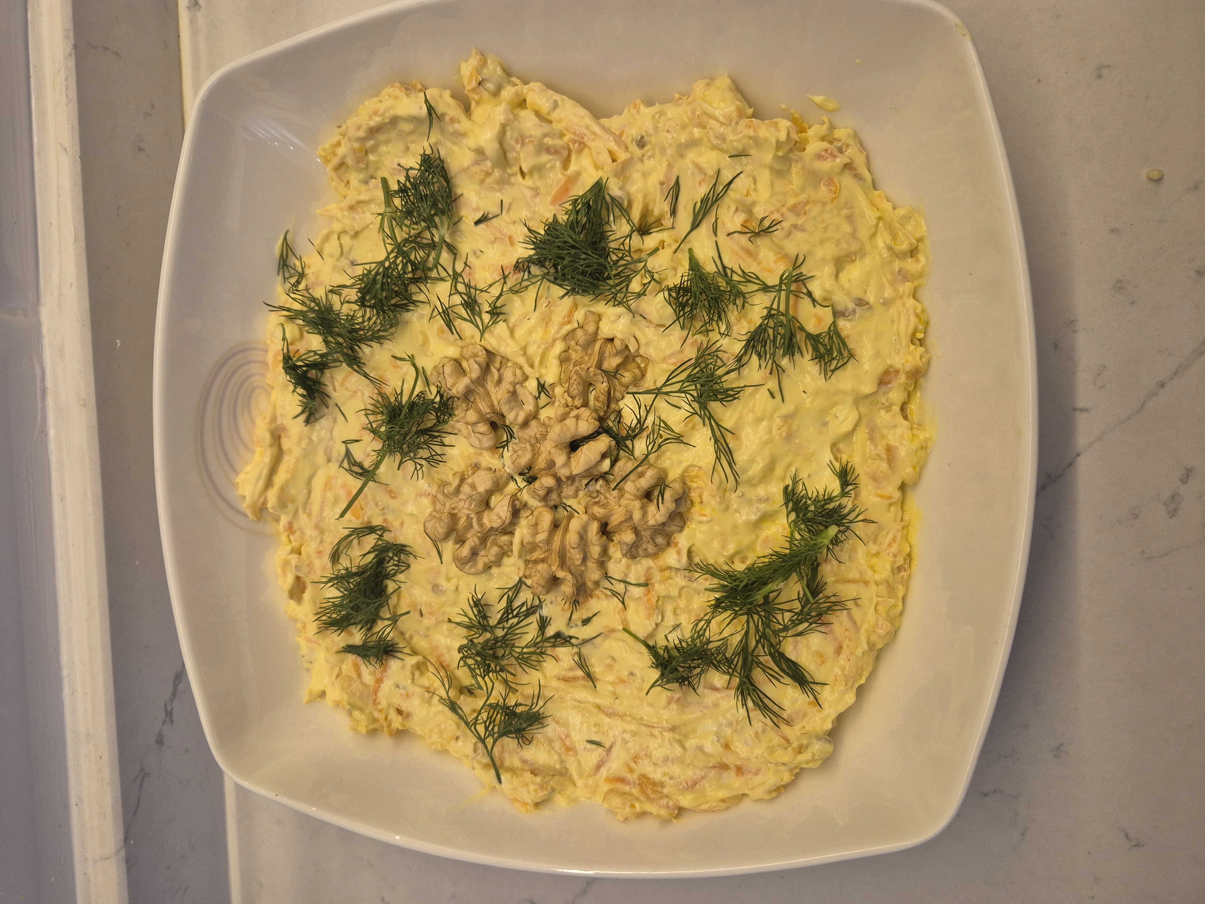 Bir karıştırma kabına özlediğiniz yoğurdun içine kerevizi ve havucu rendeleyin, cevizi ufak ufak doğrayıp ekleyin ardından mayonezi ilave edin en son ezdiğiniz sarımsağı ilave edip karıştırın.Dipnot:H...
