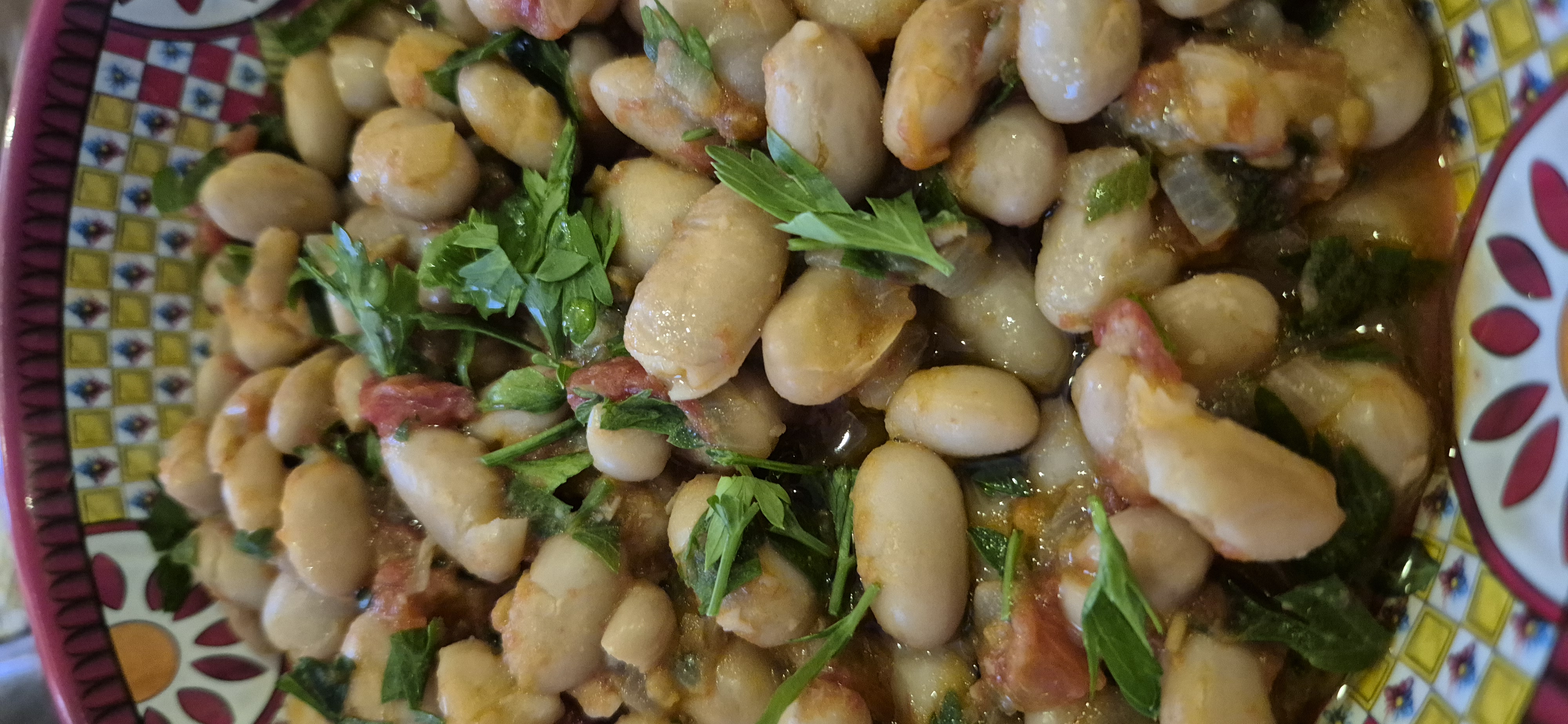 yeşillikler ince ince doğranır ve üzerine fasulye maydanoz limon tuz zeytinyağı ilave edilir afiyet olsun