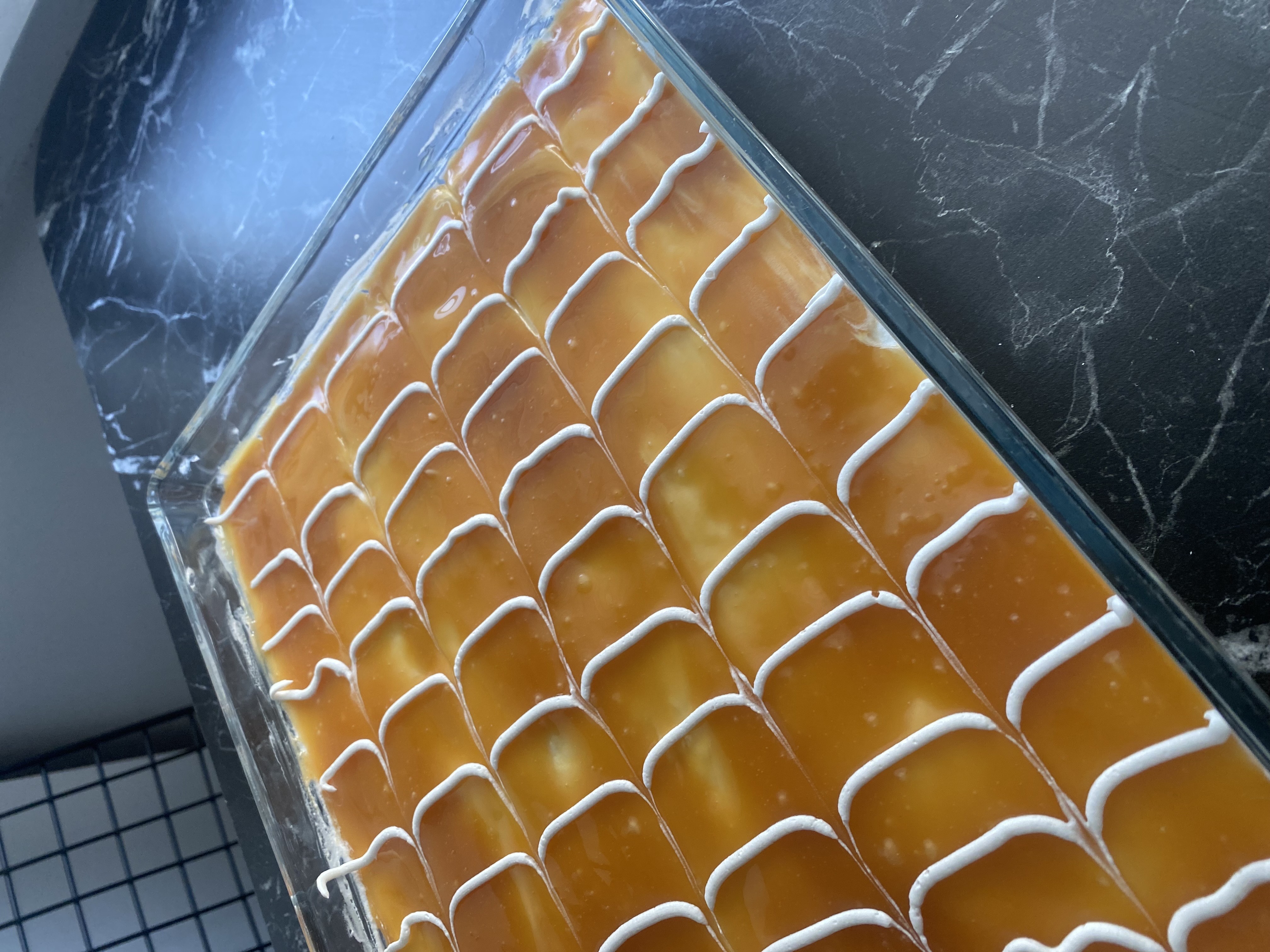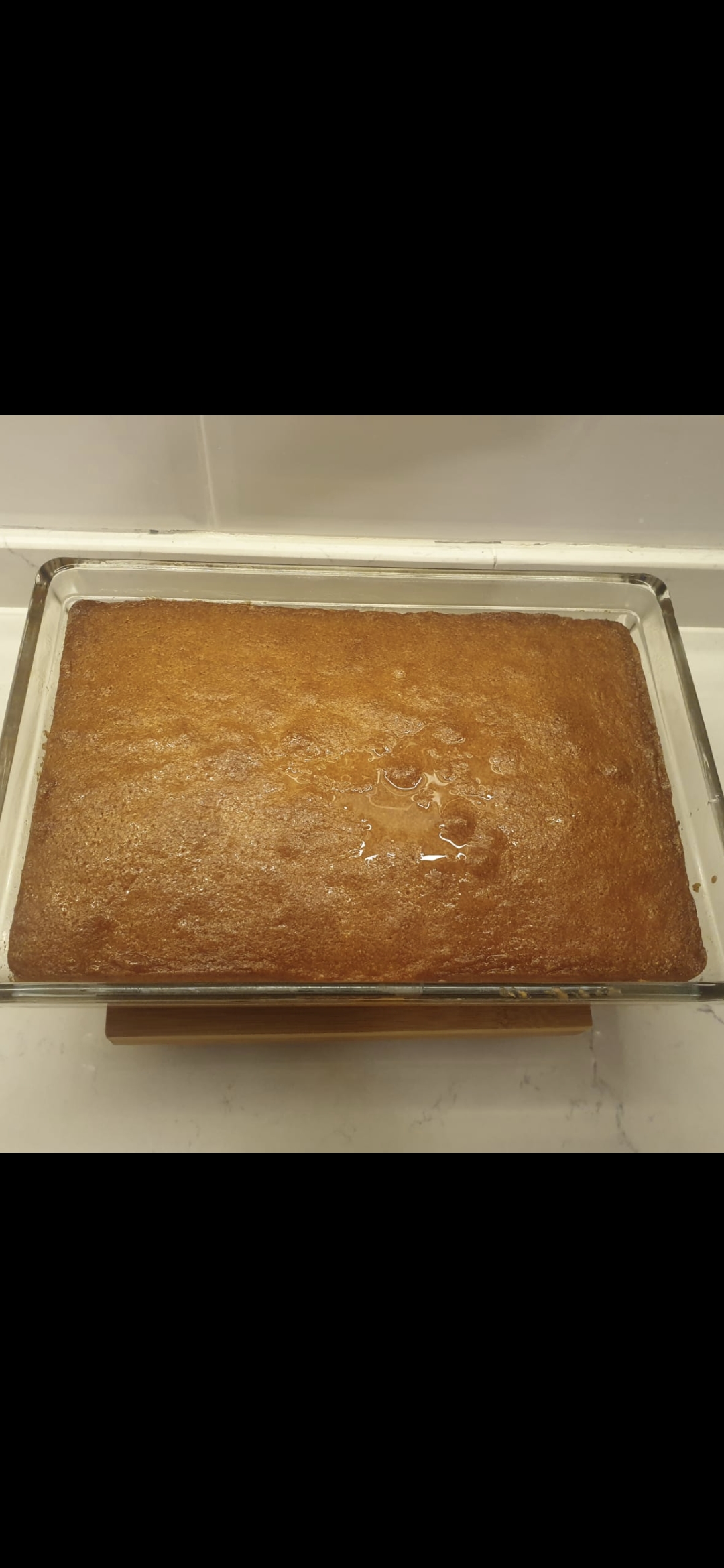 Kek hazırlanır Kek soğuyunca 1 bardak soğuk süt dökülür Soğuyan muhallebi dökülür