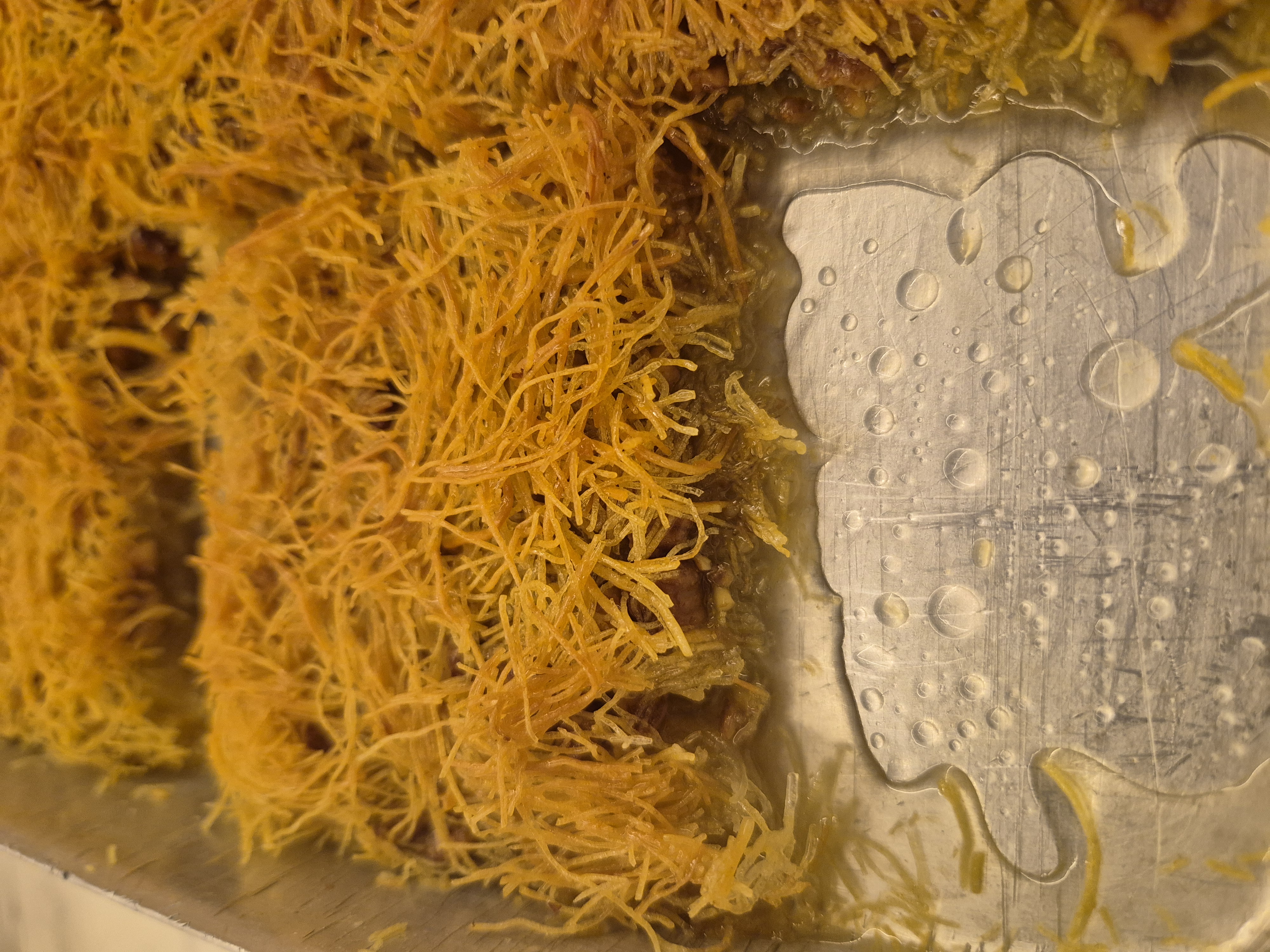 500 Gr kadayif 250 Gr tereyağı ile harmanlanır.yarisi yağlanmış tepsiye dizilir arasına ceviz döşenir kalan kadayiflar üzerine kaplanır eritilmiş tereyağı heryerine gelecek şekilde paylaştırılır 180 ...