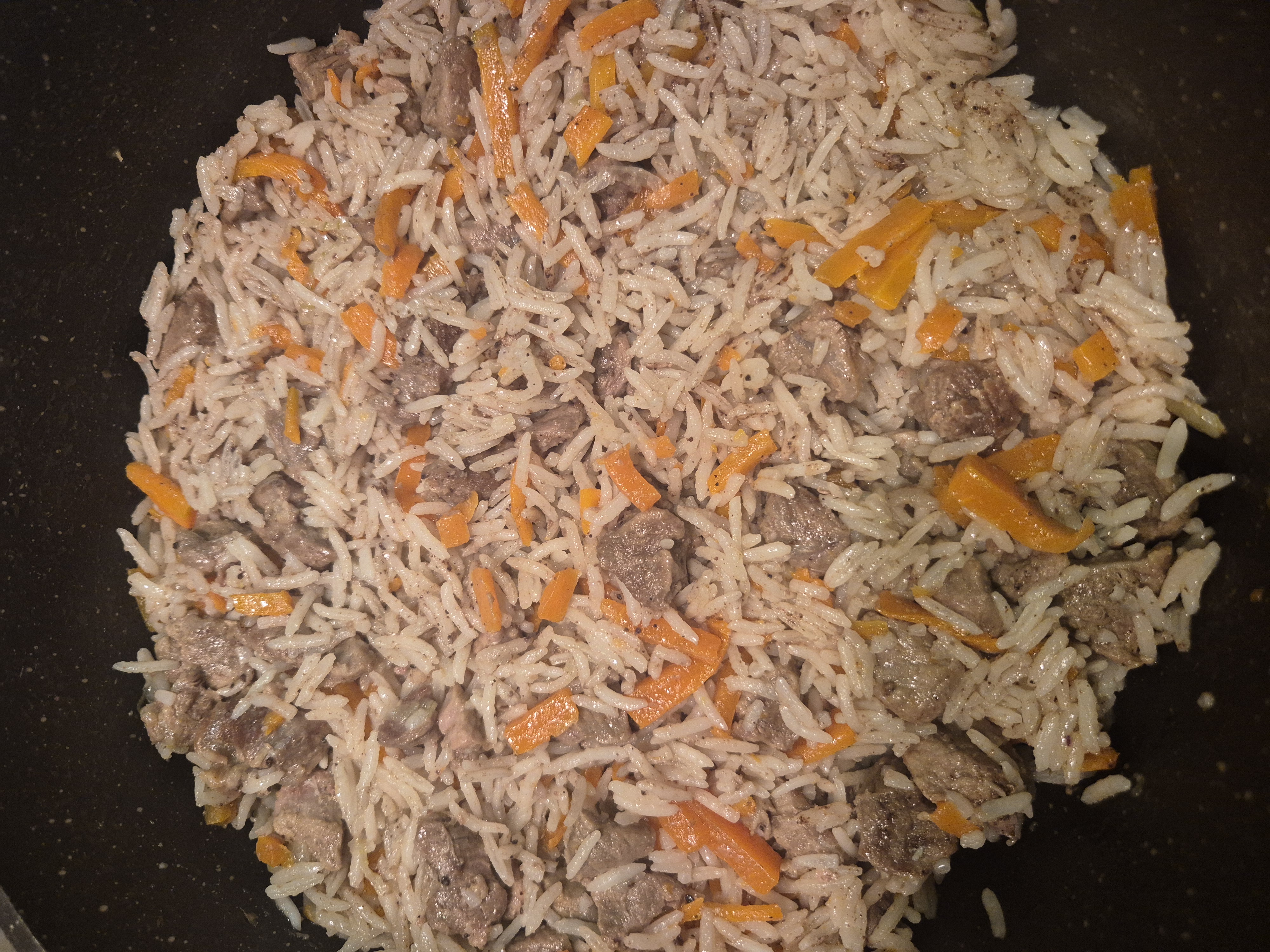 1. AdımEtleri zeytinyağında kızarana kadar kavurun suyunu bırakacak daha sonra üzerine sıcak su ekleyin suyunu çekene kadar pişirin.Suyunu çektikten sonra havuçlar ekleyin daha sonra da soğanı ekleyip kavurun havuç ve soğanlar diri kalmasın.En son üzerine pirinci ekleyin etlerin üzerinde kalacak pirinçler suyunu ekleyip üzerine de tereyağı ekleyin.Piştikten sonra(opsiyonel)yeni bahar ekleyin.