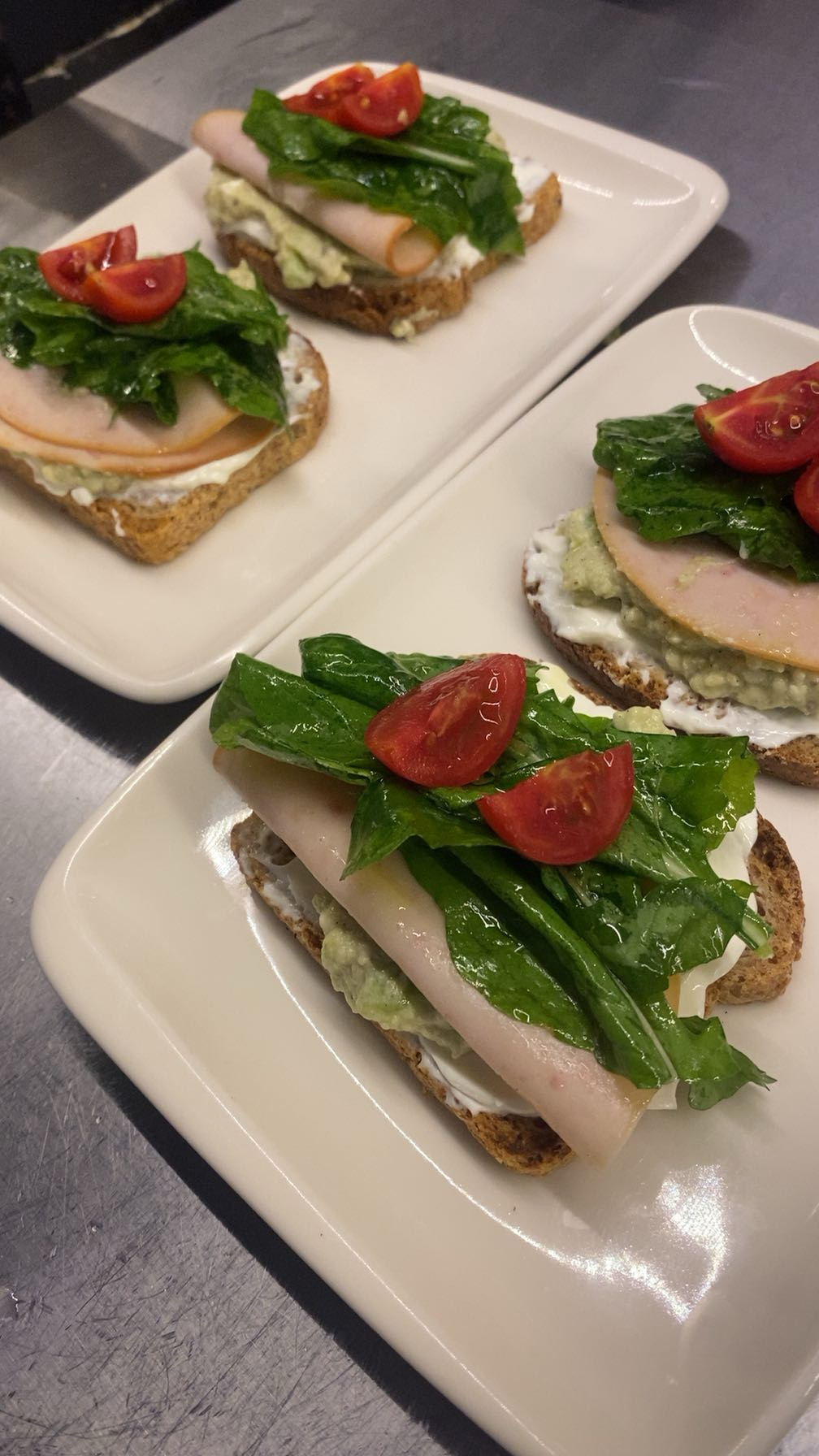 2. Adım- ekmeğin en altına peynir sürelim üzerine avokadolu sos onun üzerine bir dilim hindi füme biraz yağ limonla harmanlanmış roka ve çeri domates ekleyelim afiyet olsun