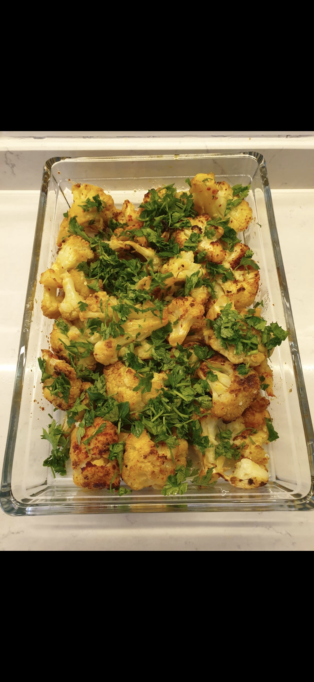 Karnıbaharları yıkadıktan sonra suyunu süzün.Bir karıştırma kabına aldığımız karnıbaharların üzerine zeytinyağı,tuz ve pul biberi ekleyip karıştırı.Yağlı kağıt serdiğiniz fırın tepsisine dizip fırına verin.200 °fan ayarında kızarana kadar.(Önceden haşlanmayacak)Pişip ılıdıktan sonra bir kaseye zeytinyağı,sarımsak ve limon suyunu ekleyip karıştırıp üzerine dökün ve boca edin en son üzerine maydonoz serpiştirin.